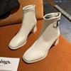 White High-heeled Short Boots Women's Autumn and Winter Square Toe Women Ankle Boots 2024 New Fashion Chelsea Boot for Woman