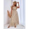 Rochie lungă pentru femei, primăvară vară, cu decolteu în V, cu mâneci frunze de lotus Rochii casual cu talie înaltă