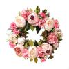 Coroană de ușă cu frunze verzi Coroană de flori artificiale de bujor 40 cm Coroană de primăvară de flori de mătase de bujor fals pentru decorarea peretelui de nuntă pentru ușa din față