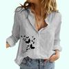 Bluză subțire din bumbac și in pentru femei, la modă, casual, cu imprimeu fluture.