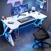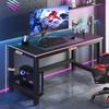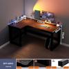Birou pentru computer cu sertare și priză de alimentare, bandă LED, uz casnic, birou de colț, economisește spațiu, masă de studiu și scris cu suport pentru monitor