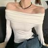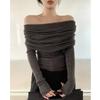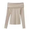 Temperament de primăvară Femei Decolteu oblic Cămăși sexy Elegante Mânecă lungă Umeri goi Bluze tricotate Femei Casual Stradă Solidă Modă Croială slim Topuri 25998