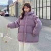 Jachetă de iarnă din bumbac cu glugă pentru femei Parka scurtă, haina caldă, rezistentă la vânt, jachetă îngroșată de puf, culoare solidă