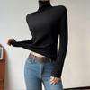 Tricouri cu gât țesut cu mânecă lungă, de culoare solidă, pentru femei, toamnă și iarnă, tricouri cu mânecă lungă pentru femei