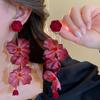 Cercei versatili cu flori din material textil, stil lung personalizat cu flori false, cercei eleganti pentru femei