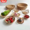 Coș țesut manual din ratan, fructe, tort, pâine, farfurie pentru gustare, tavă pentru servire, cină, cafea, recipient pentru micul dejun