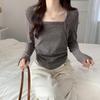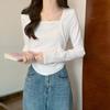 Pure lust style square collar slim clavicle top for women spring and autumn new fake two-piece niche irregular sexy hot girl long sleeves