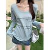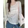 Letter printed loose slightly translucent top with large neckline sun protection air-conditioning blouse long-sleeved cool T-shirt for women in summer