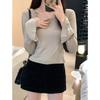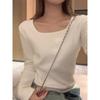 Apricot velvet thickened long-sleeved inner wear women's autumn and winter new square collar right shoulder slim bottoming shirt temperament top