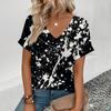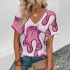Tricou de vară pentru femei cu gât în V, imprimat 3D, cu model retro cu dungi, tricou de modă cu mâneci scurte pentru femei