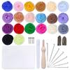 BUDDUR Kit de împâslire a lânii cu 20 de culori, cu ace de împâslire și instrucțiuni pentru confecționarea de țesături DIY, pachet de materiale nefinisate