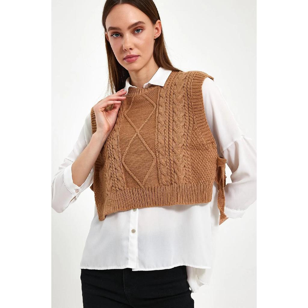 Women's Adjustable Patterned Side Tie Knitwear Sweater