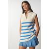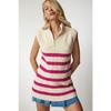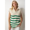 Women's Cream Black Zippered Collar Striped Sweater Mx00123
