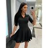 Rochie de damă uni cu talie, cu mâneci lungi și rever