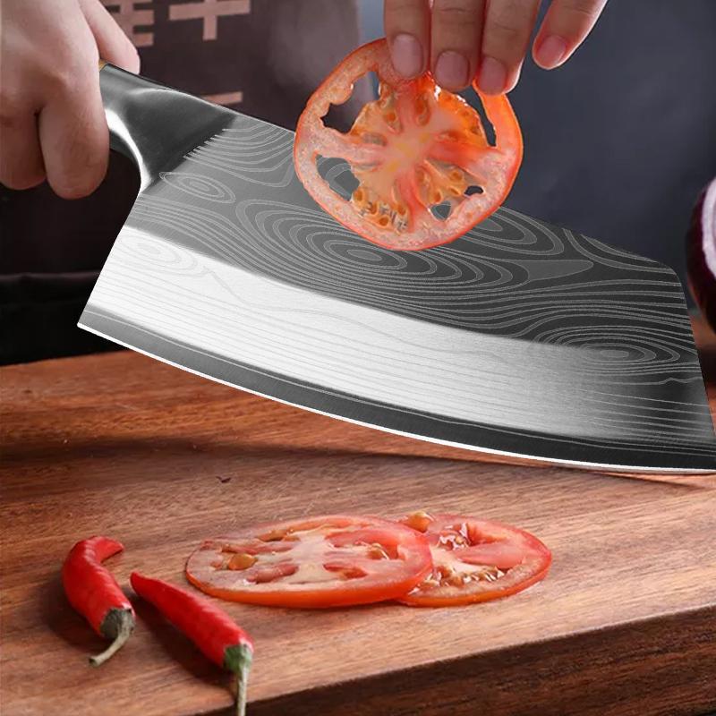 Kitchen Knife Damascus Laser Pattern High Carbon Cleaver Chef Knife Slicing Japanese Ultra Sharp Meat Butcher Cooking Knives