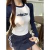 American raglan sleeve bottoming shirt T-shirt spring and autumn niche stitching color matching hot girl short embroidered long-sleeved top