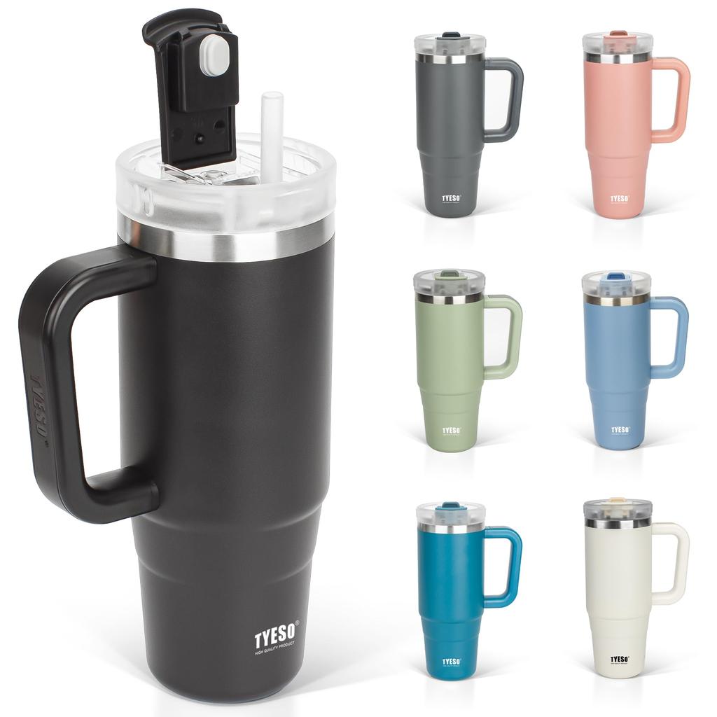 TYESO Tumbler Sticlă de apă Izolată la rece Sticlă din oțel inoxidabil Sticlă de apă cu mâner de paie Cană de exterior Izolată în vid Structură dublă Lată