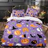 Set de husă de pilotă vintage de Halloween, set de lenjerie de pat din poliester 2/3 piese cu desene animate de Halloween cu pietre funerare, cranii și oase