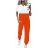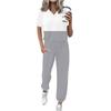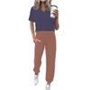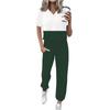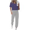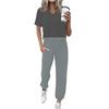 Trening de damă la modă pentru jogging cu gât în V, mânecă scurtă, curea, pantaloni largi