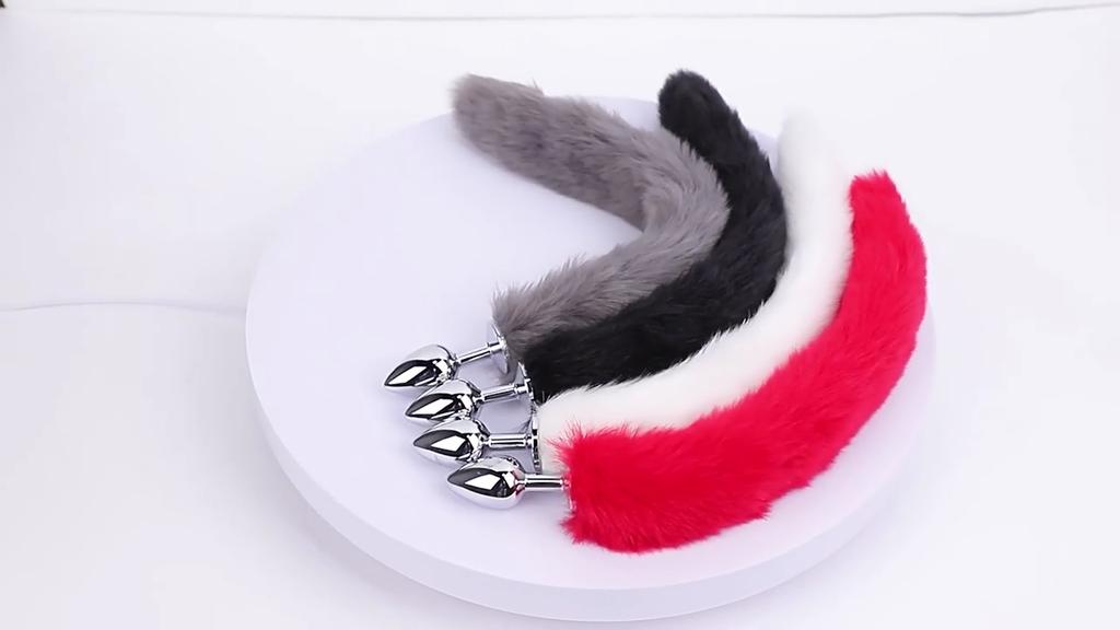 Erotic SM Props Small Metal Anal Plug Solid Colour Fox Tail Anal Plug Vestibular Development Tempering Adult Supplies