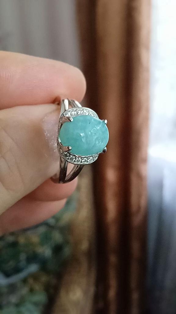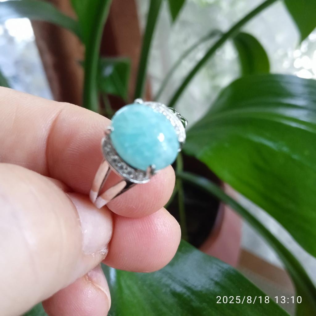 Bolaijewelry Inel cu amazonit natural, design oval, argint 925, bijuterii fine, elegante și romantice, pentru femei, ținute de banchet