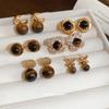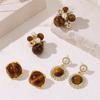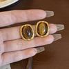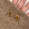 Cercei geometrici cu ac de argint S925 și piatră ochi de tigru - Design de lux ușor de toamnă/iarnă pentru femei