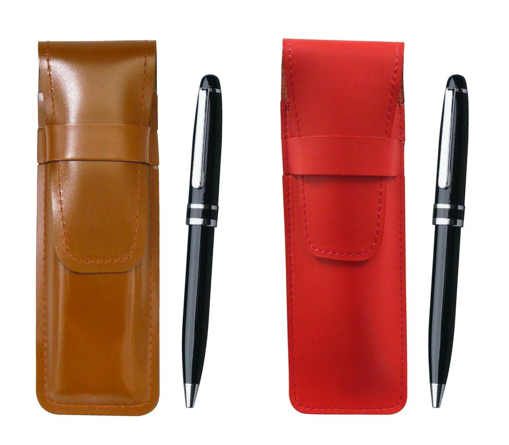 Penar subțire din piele de vacă, roșu-maro, set, pix rotativ Midnight, negru, ASCR-SA2002BP-B