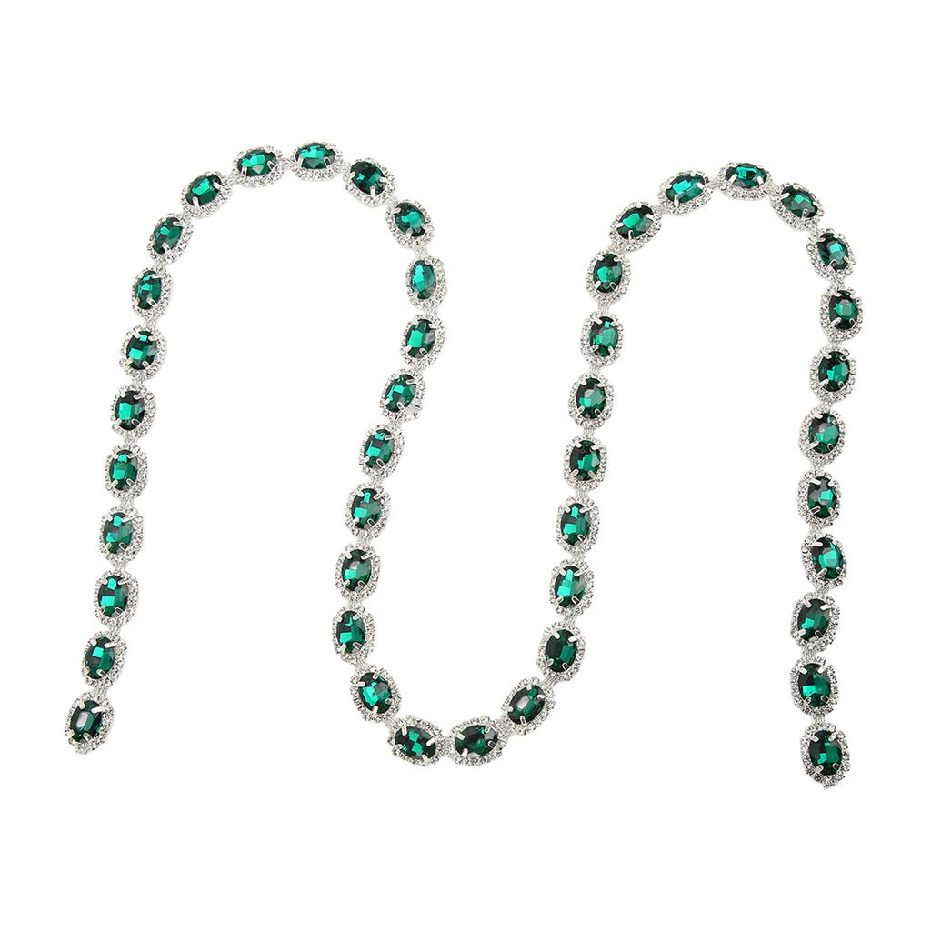 1 Yard Șnur cu Strasuri Lățime 1,5 cm Stras Oval Verde Malachit Decupabil Lucrat Manual