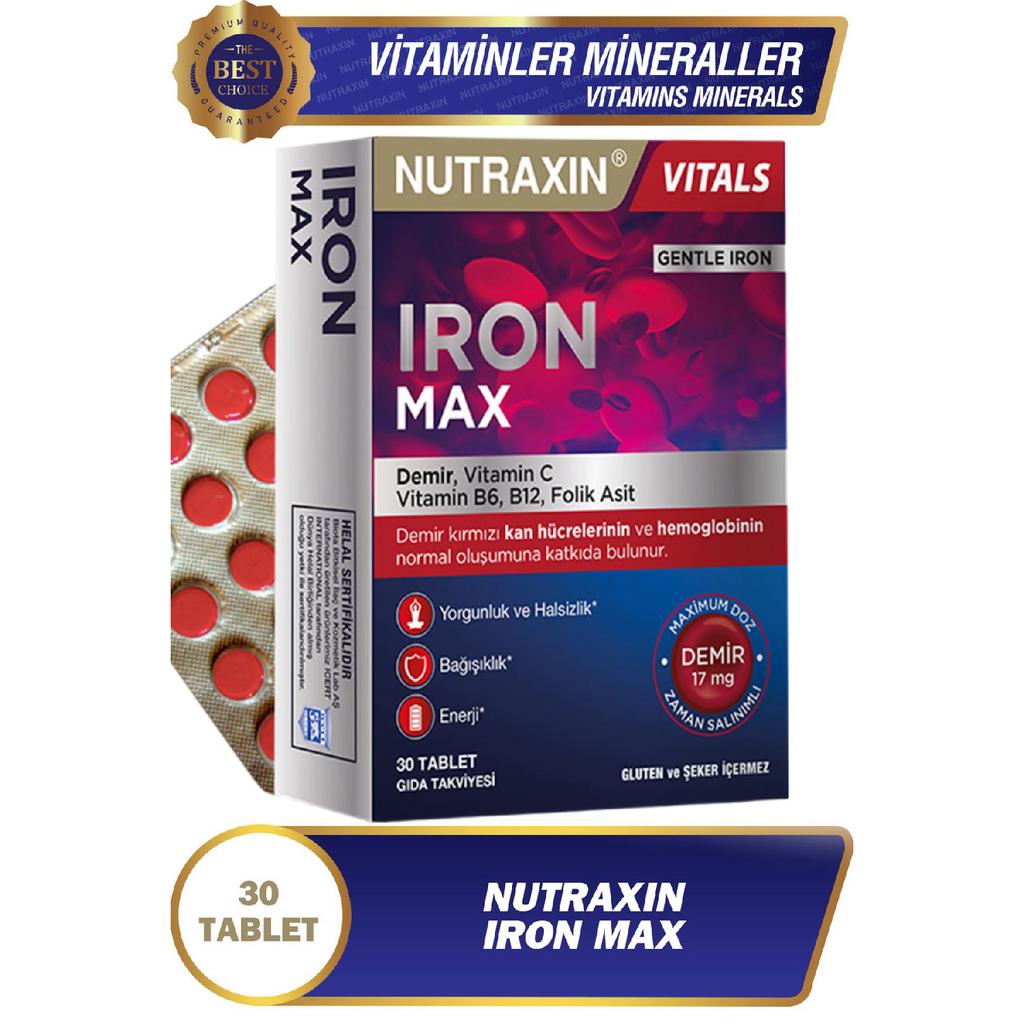 Iron Max Max contains 17 mg of time release iron in the form of bishisinate. The formulation also contains vitamin C, B12, B6 and folic acid.