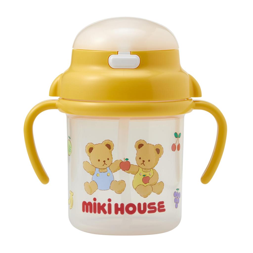 Cana de paie Cană de antrenament 200 ml Fabricat în Japonia Se poate spăla în mașina de spălat vase Băieți Fete Bebeluși Copii Bebeluși Veselă Urs Fructe Galben [MIKI HOUSE] 46-7150-683
