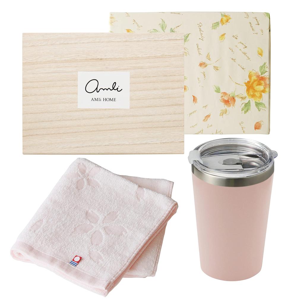 Set cadou pentru pahar Imabari cu capac, prosop cu flori de cireș, pentru sărbătorirea familiei [Dolce duo], pentru femei, pentru mamă [împachetat cadou]