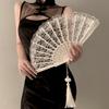 Nou chinezesc retro negru dantelă pliant fan Jk Lolita Hanfu Cheongsam fan franjuri stil antic fotografie recuzită feminină