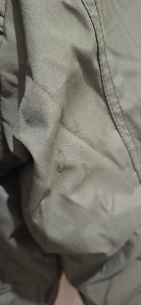 Adaug - totul e ok. 6XL luat pentru dimensiunile figurii (în fotografie). Înălțime 163 - până la mijlocul feselor, la ridicarea mâinilor talia este acoperită. Potrivire ideală, ergonomie, calitate feroneriei și a cusăturilor. Ață -"mătase" de brodat și pentru prelate, țesătură - părul de pisică nu se lipește, picăturile de ploaie se scurg, dacă freci apa, aceasta se absoarbe (în fotografie pată închisă la culoare și picături alături). După spusele soțului - peste un tricou iarna la -10 °C poți sta 20 de minute fără probleme. Pe fermoarele din piele presată, „limbile” cursorilor ar trebui dublate cu pânză adezivă și o bucată de piele/material textil pentru a păstra frumusețea ștanțării.. Nu groasă, adică, nu ca o umflătură, ci normală, modernă, compactă, ușoară, confortabilă și caldă.