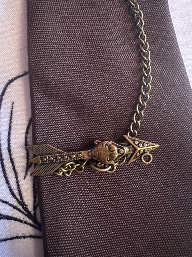Cravată elegantă cu elastic👍 O astfel de cravată retro arată foarte interesant! O variantă gata făcută comodă, o cravată pe care nu trebuie să o legi. Țesătură de costum. Două broșe sunt prinse cu ace, acestea fiind unite printr-un lanț. Broșele sunt din metal de culoare bronz.. Super, sub cămașă, sacou. Recomand din suflet👍🧡👍
