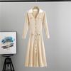 Caracteristică: Polo cu decolteu în V, cu nasturi, mânecă lungă, tricot cu coaste, linie în formă de a, tiv pliat fluent, subțire, croială simplă; culoare contrastantă șic rupturi la decolteu, manșetele adaugă mai multă modă și romantice, rochii pulover pentru femei la modă.