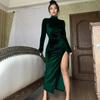 Toamnă și iarnă Rochii lungi, subțiri, din catifea, cu gât înalt