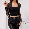Top tricotat elegant pentru femei, cu gât pătrat, cu panouri din dantelă și șnur lateral subțire