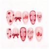 Women's Red Wearable Nails Christmas Manicure False Nails Bow Nail Tips(Glue 2ml)