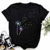 Tricou cu imprimeu păpădie pentru femei de vară Cămăși pentru femei de mărime mare ocazional Tricou cu mânecă scurtă Top negru Tricou cu gât în formă de O