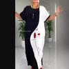 Rochie lungă leagăn vintage cu mânecă scurtă imprimată