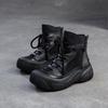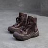Johnature Cizme din piele naturală cu decupaje, retro, lucrate manual, cu vârf rotund, respirabile, pentru femei, cu talpă groasă