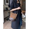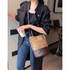 Geantă tip găleată din piele de vacă înghețată Geantă de mână de mână din piele naturală pentru femei
