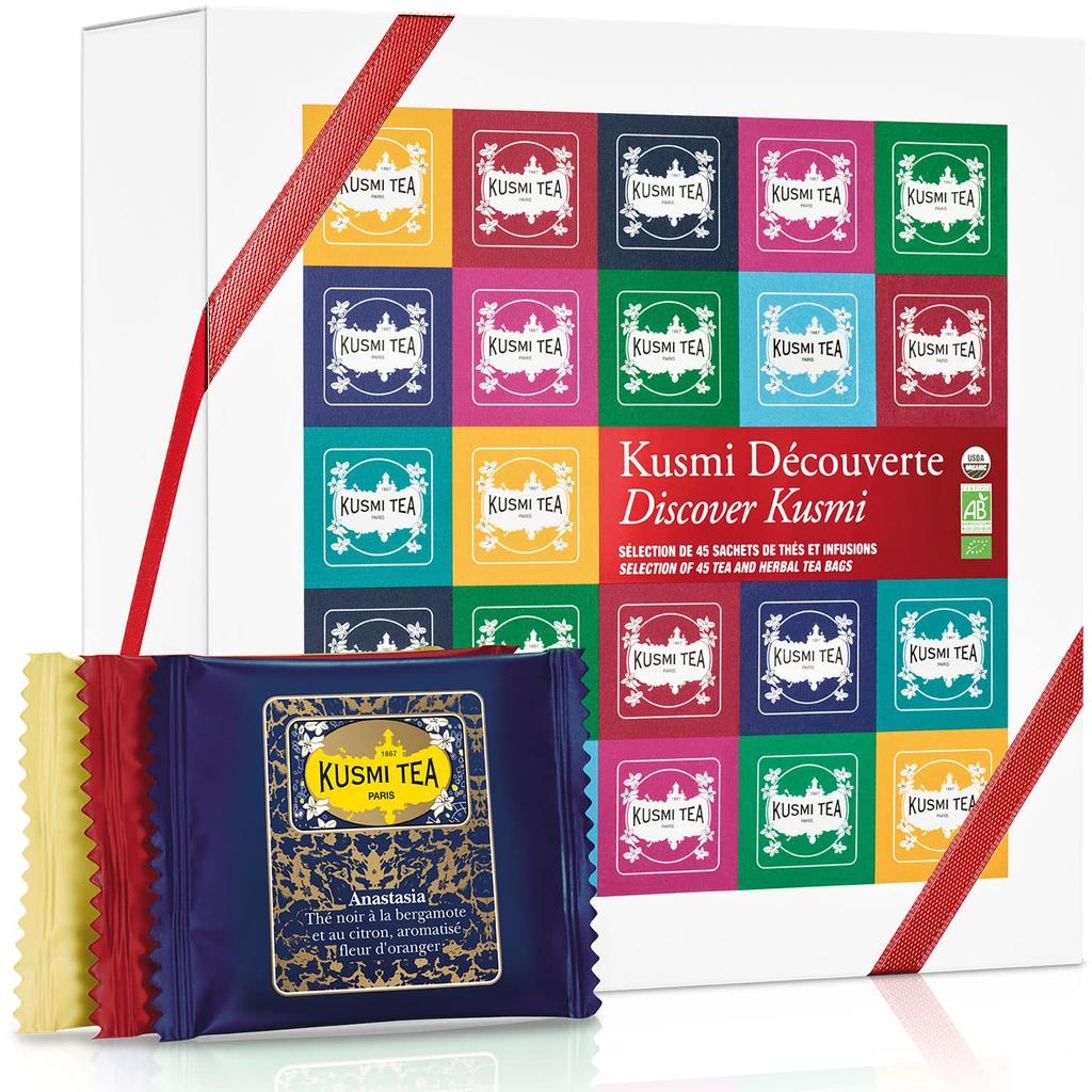 KUSMI TEA Asortiment Cadou Kusumi Tea 45 Pliculețe de Ceai 2g x 45 Pliculețe 5 plicuri Ceai Negru Organic Organic Certificat JAS (9 tipuri, fiecare) [Import Regulamentar]