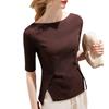 Tricou cu mânecă medie Îmbrăcăminte nouă pentru femei Temperament Umăr cu un singur cuvânt Tricou din bumbac de culoare solidă Top cu despicare în talie