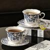 Porțelan osos de înaltă calitate, porțelan albastru și alb, cești și farfurii de cafea din ceramică, cești pentru ceaiul de după-amiază cu lingurițe