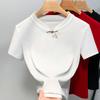 Stand-up Collar Short-sleeved T-shirt Women's New Women's Clothing New Chinese Solid Color Cotton T-shirt Design Button-up Top