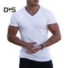 Tricou cu mânecă scurtă pentru bărbați, cu decolteu în V, pentru fitness, cu dungi sportive, de culoare uni, Tricou, îmbrăcăminte de gimnastică respirabilă, pentru sport, călătorii, birou