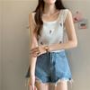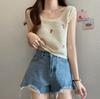 Femei Topuri Tricotate de Vară cu Flori Brodate, Fără Mâneci cu Guler O, Camișol Dulce, Croșetat, Articole de Exterior, Vintage, Largi, de Interior, Scurte