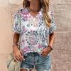 Tricou Boho Harajuku pentru damă, cu imprimeu grafic, cu mâneci scurte de vară, Topuri casual, la modă de stradă, tricou cu decolteu în V, îmbrăcăminte pentru femei, tricouri pentru femei