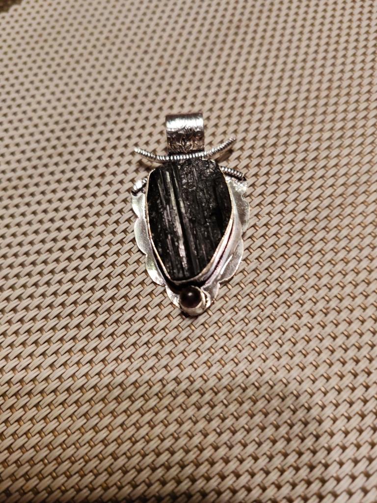 Pandantiv din argint 925 cu turmalină neagră naturală și spinel, 2,28" N8u92